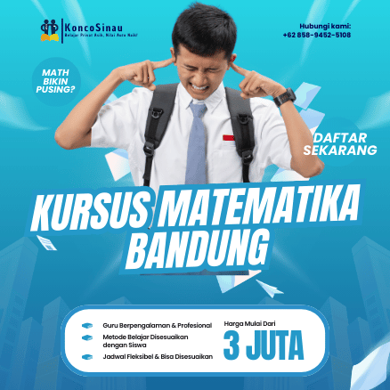 Di KoncoSinau.id, kami hadir untuk membantu lewat Kursus Matematika di Bandung yang bisa dijalani offline (guru ke rumah) atau online (via Zoom/Google Meet). Bedanya dengan kursus online lain, kami nggak cuma kasih rekaman video, tapi benar-benar interaktif. Anak bisa diskusi, nanya kapan pun bingung, dan ikut latihan soal dengan tutor.